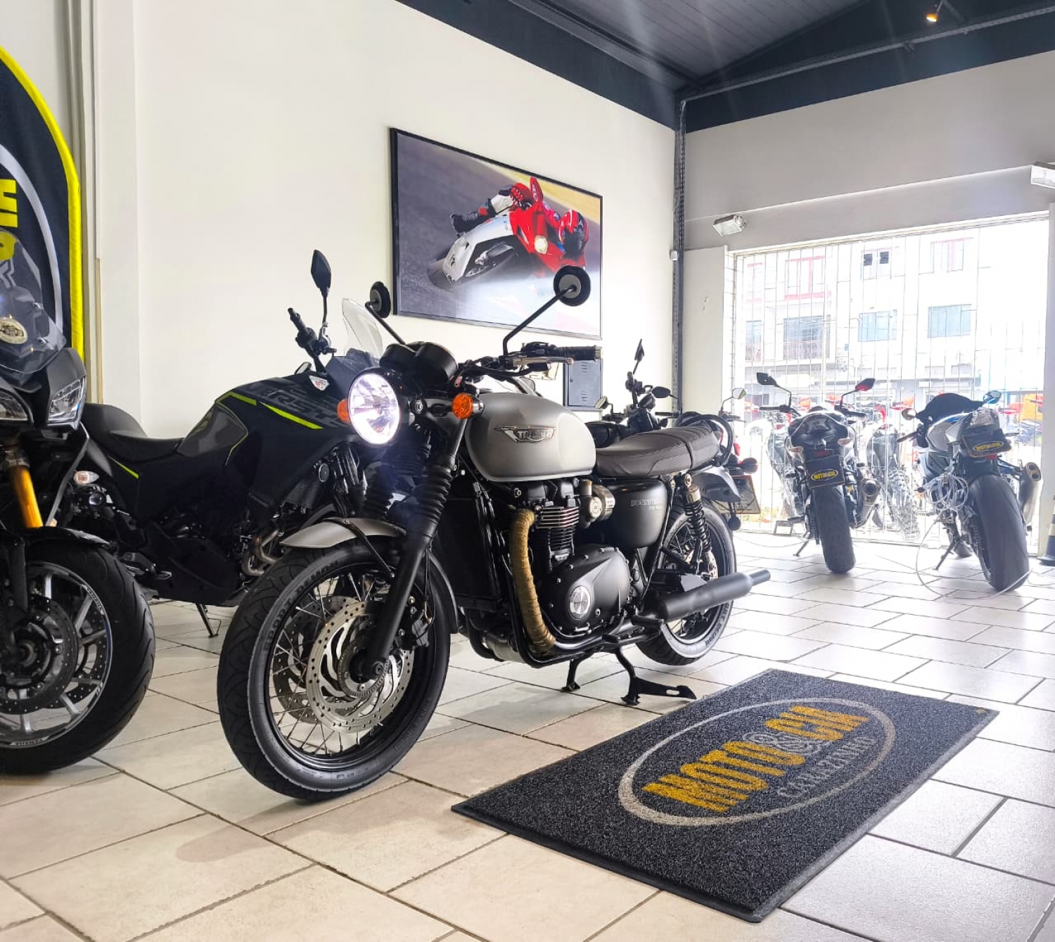 Tecnologia: 2 modos de pilotagem (Rain e Road) e partida elétrica.